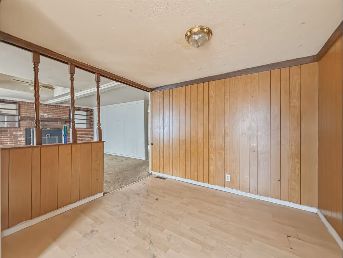 This ranch-style home offers comfortable single-level living with a layout full of possibilities. Step inside and imagine how you could make the space your own while enjoying the character it already offers. Built in 1956, the home features 1,585 square feet per county records, with a brick and vinyl exterior and a mix of wood and vinyl windows. The layout includes three bedrooms and one full bath, with the third bedroom offering a walk-through to an additional room that could serve as an office, sitting area, or flexible space. A detached two-car garage is also on the property, though it is currently in poor condition and may require repairs.